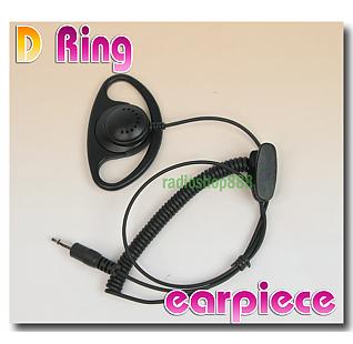 D Shape Earpiece- Listen only for speaker mic Soft rubber D shape earpiece for listen only applications. Loud and Clear. Comfortable for most users.  Available in several versions to suit various radios. The 3.5mm plug version is also available with a short cable for connection to a Lapel Speaker Mic